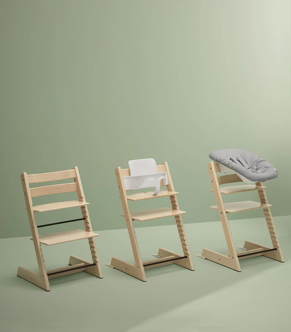 - ニューボーンセットは生後すぐから、ベビーセットは生後6ヶ月から使用でき、ハイチェアに早変わりします。どちらも別売りで、豊富なカラーをご用意しています。