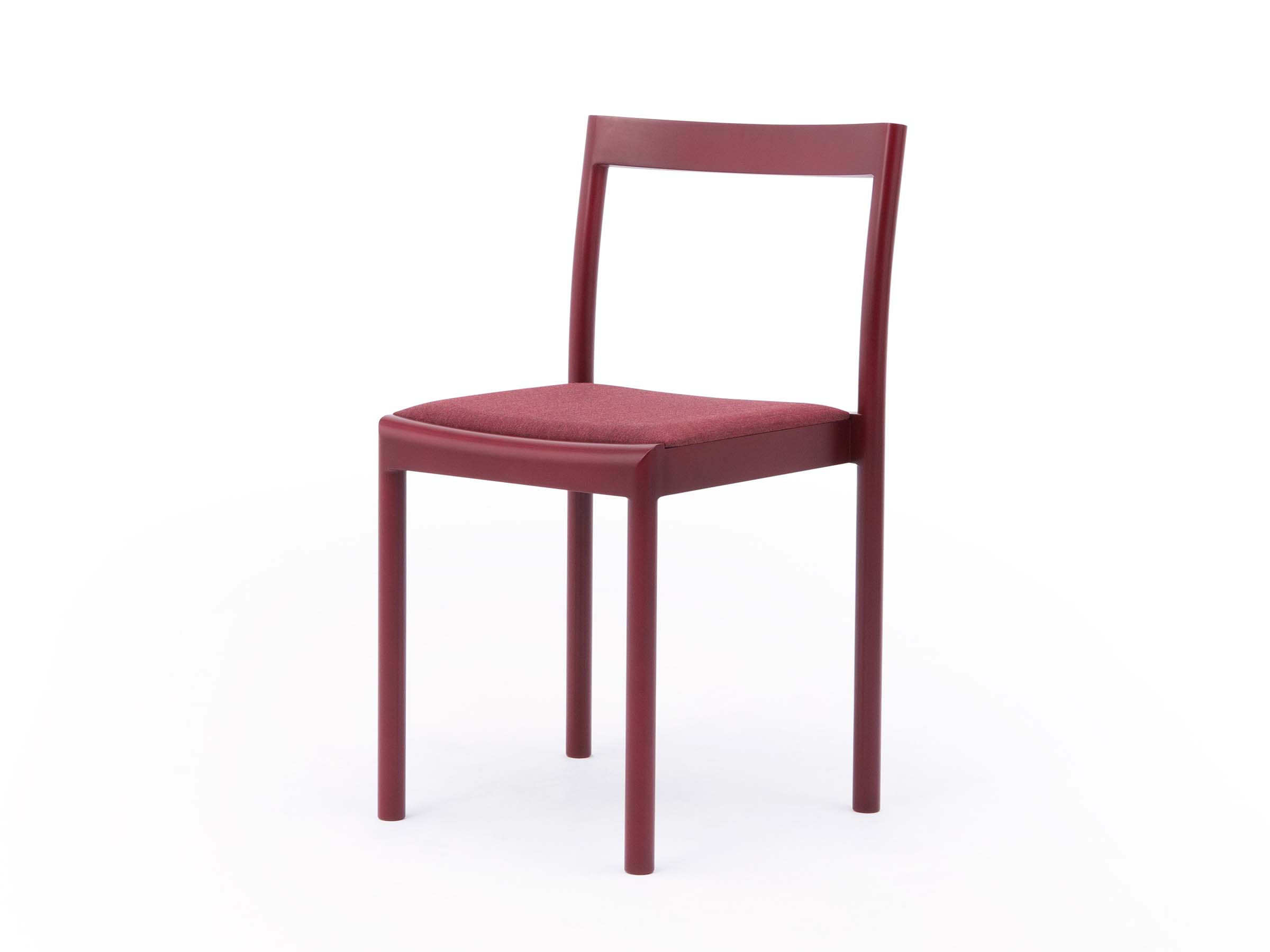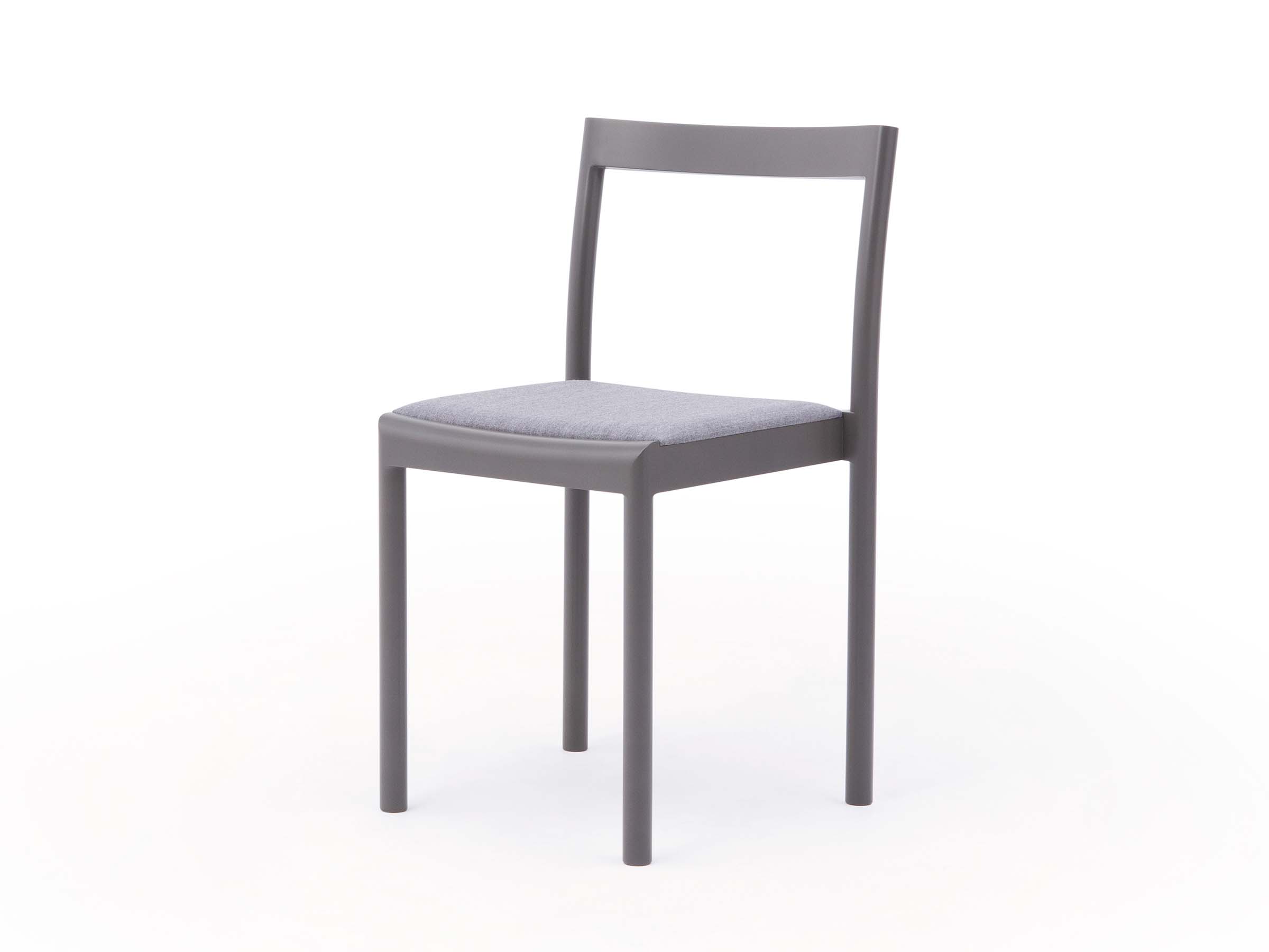 シンプルな形状・構造のチェアに対し、 ラインやサーフェイスへ独自のスムージングを施すことによって、 フレームから座面に至る全体が一体的フォルムを成したスタッキングチェアです。