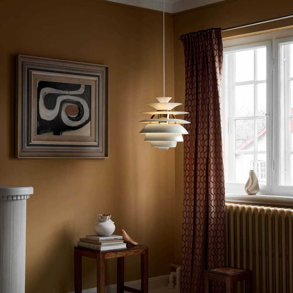 ポール・ヘニングセンは1924年から1925年にかけて、パリでの博覧会に向け、最初の複数シェードのランプを設計しました。両者のパートナーシップは、ヘニングセンが亡くなる1967年まで続きました。グレア・フリーの光(眩しさの除去)、明るさが最も必要とされる場所に光を届けること、同時に柔らかい影をつくりだすこと。これらが、生涯を通じてPHが追及した重要テーマで、その光源は当時の白熱電球でした。1958年、ポール・ヘニングセンは「PHスノーボール」をデザインし、 PH 5 とともにデンマーク工芸博物館に展示しました。しかしその時点で大きな注目を集めることはなく、1983年になってようやく生産と販売が始まりました。